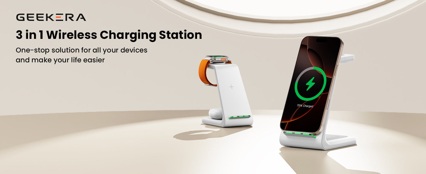 No more clutter of cords! GEEKERA 3 in 1 charging station is a one-stop solution for all your devices.
