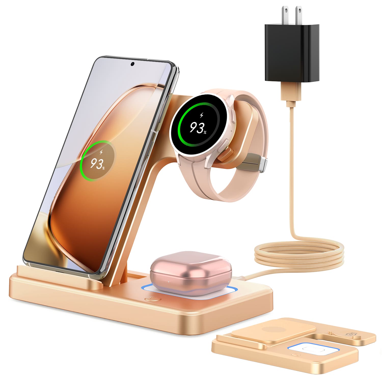 | Special Feature | Foldable Wireless Charger Stand for Travel, Sleep Friendly with ON/OFF Button, 100% Safe and Reliable, 3 in 1 Charging Station for Multiple Samsung Devices, Fast Charging & Heat Dissipation |