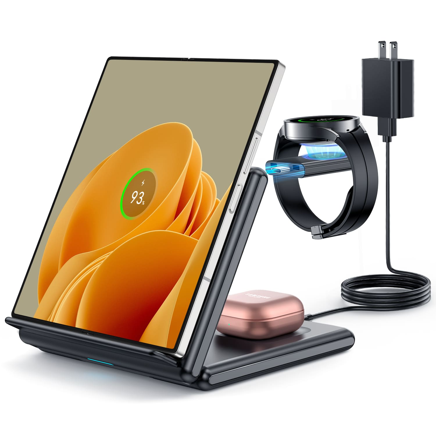 GEEKERA 3-in-1 Samsung Charger, Foldable for Z Flip/Fold 6-3, S24-S20, Watch 6-3, Buds 2 Pro/Live