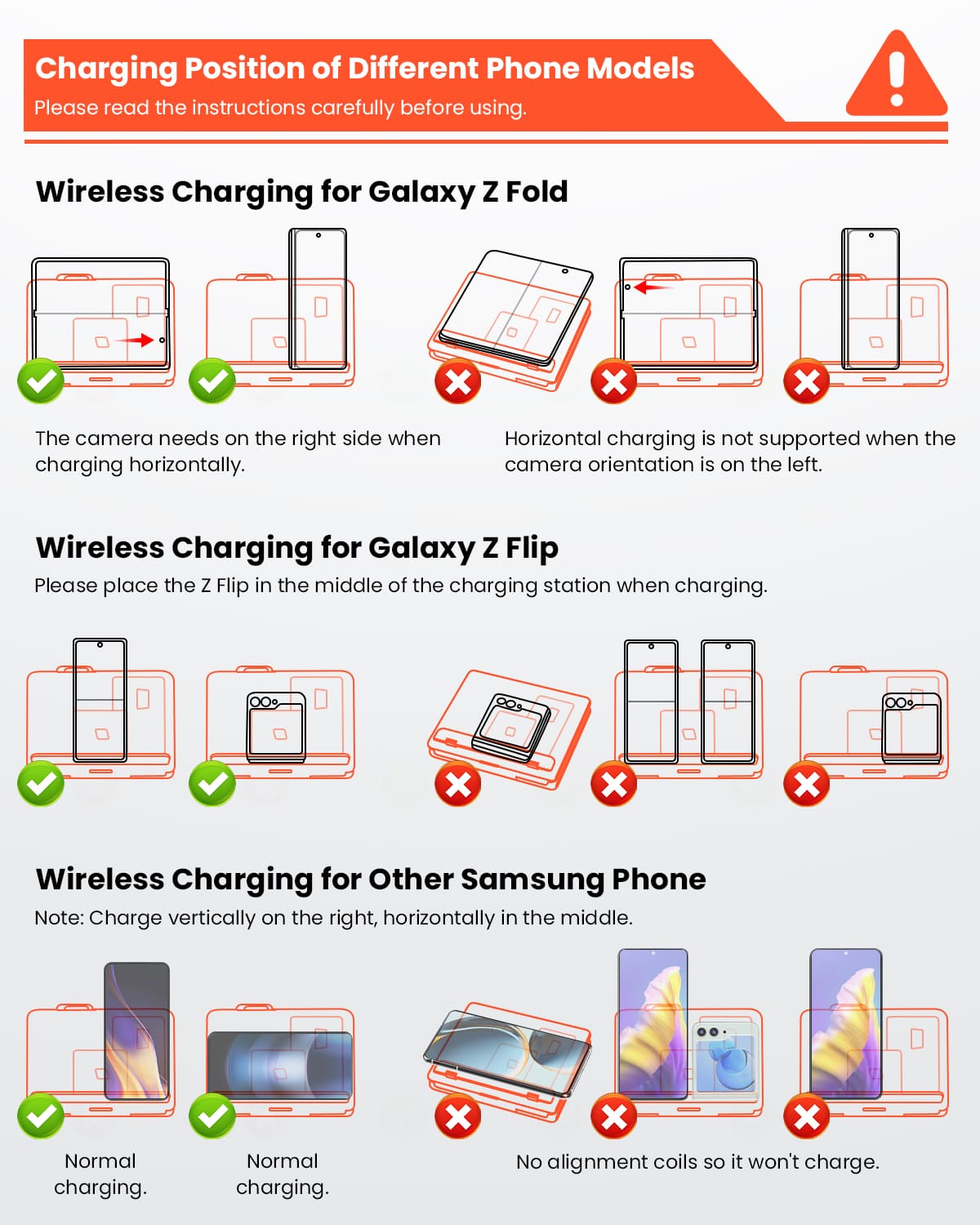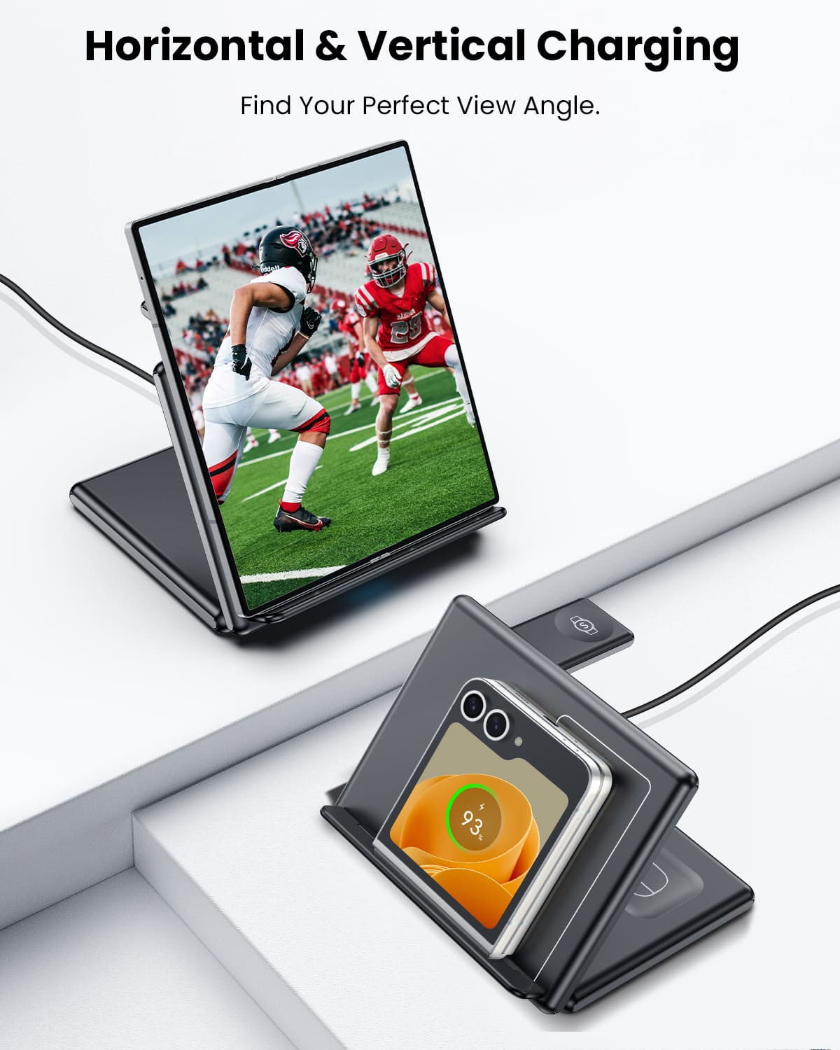 - Charge On-The-Go with Ease: Planning a trip? Don't forget to pack our fast charging station for Samsung, which is foldable and lightweight and offers unmatched convenience and flexibility. Perfect for your home and office, no more worrying about carrying multiple chargers for your devices. Whether on vacation or on a business trip, this charging station dock for Samsung is your reliable travel companion!