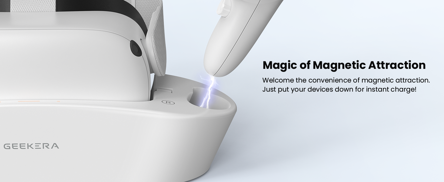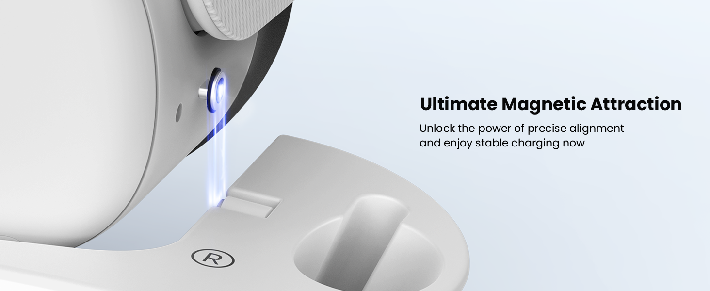 - Effortless Magnetic Charging: Experience hassle-free charging with our Charging Dock for Oculus Quest 2. Simply put your VR headset and controller down and power them up without the need to plug and unplug charging cables. The Oculus Quest 2 Charger also doubles as a storage unit, keeping your devices well organized. Stay fully charged and get ready to play anytime ❗❗❗ Tips: Not applicable to Quest 3/3S.
