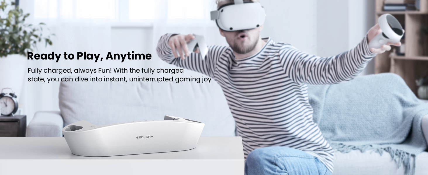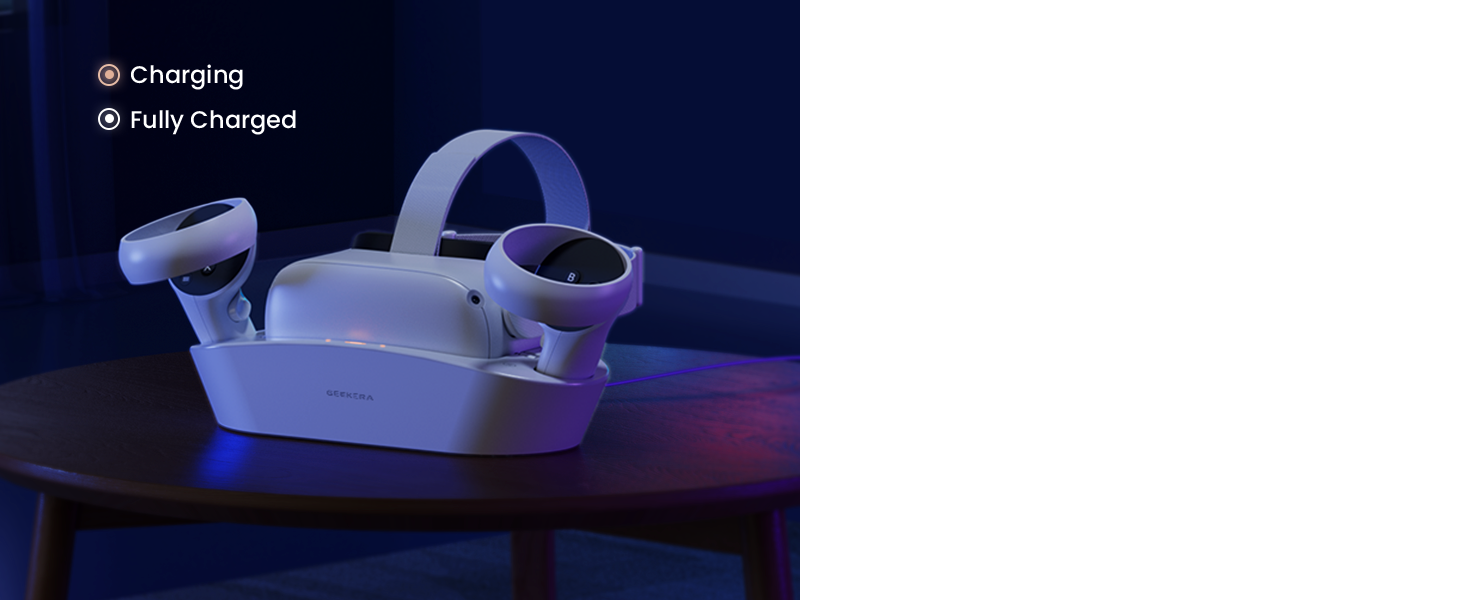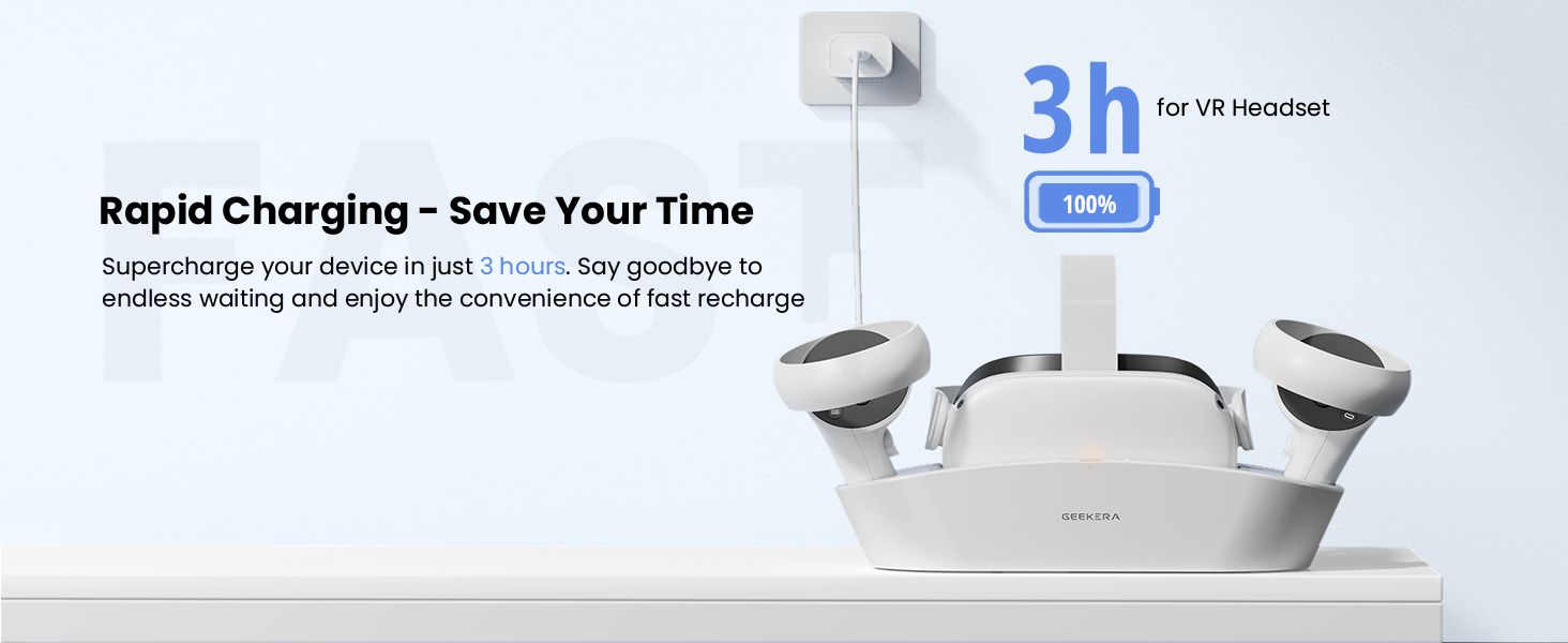 - 100% Safe & Efficient Charging: Our Charging Dock for Meta Quest 2 is designed with safety in mind, featuring multiple protections to shield your devices from overheating, overcharging, and short circuits. Rest easy knowing your devices are being charged safely with GEEKERA Charging Dock. It only takes about 3 hours to fully charge the VR headset and 4 hours to fully charge the controllers!